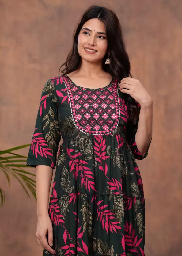 Pack of 2 Women Pink and Green Rayon Anarkali Dress
