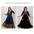 Pack of 2 Women Blue and Black Rayon Anarkali Dress
