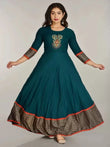 Dark Green Embroidered & Printed Dress
