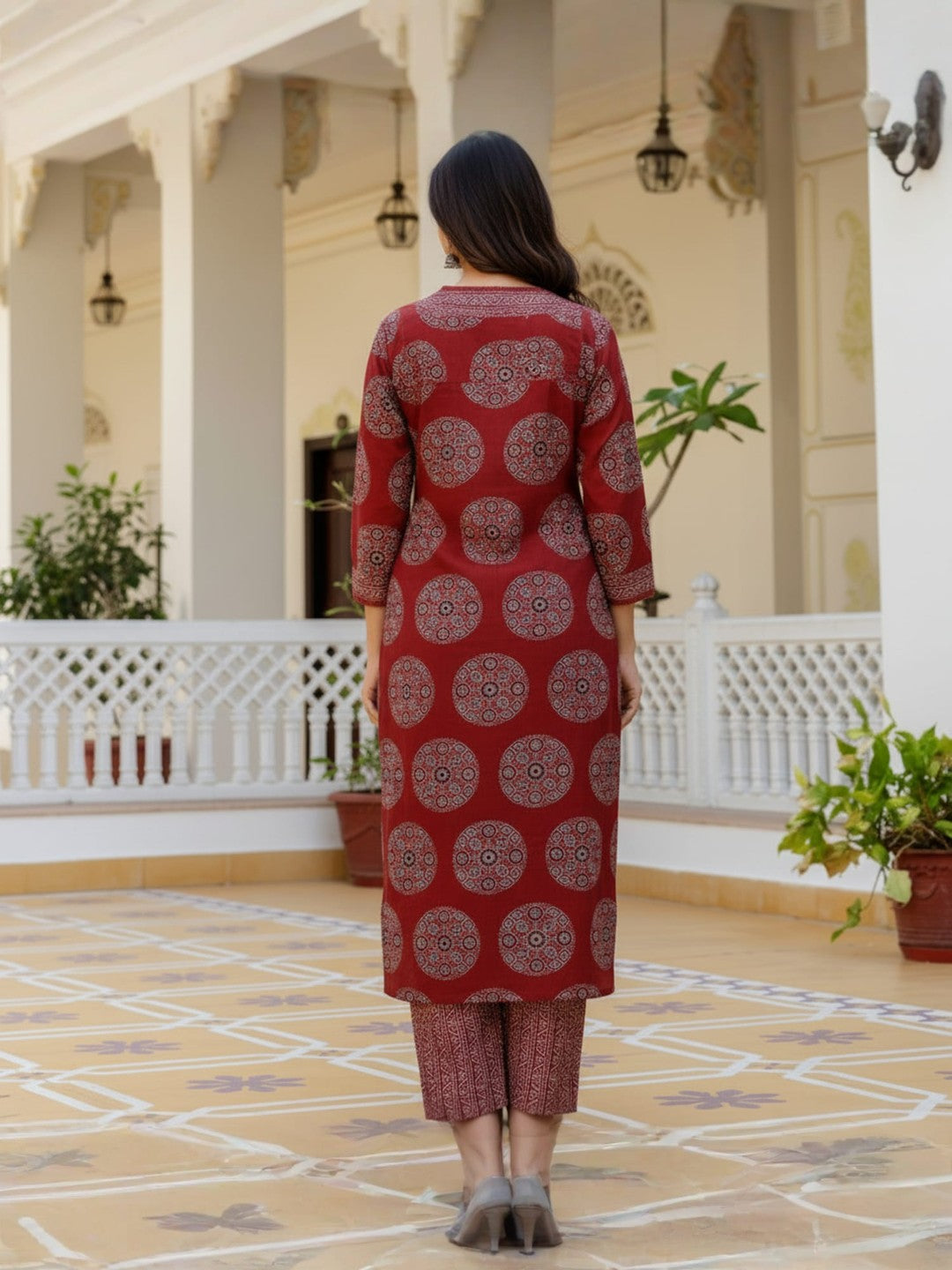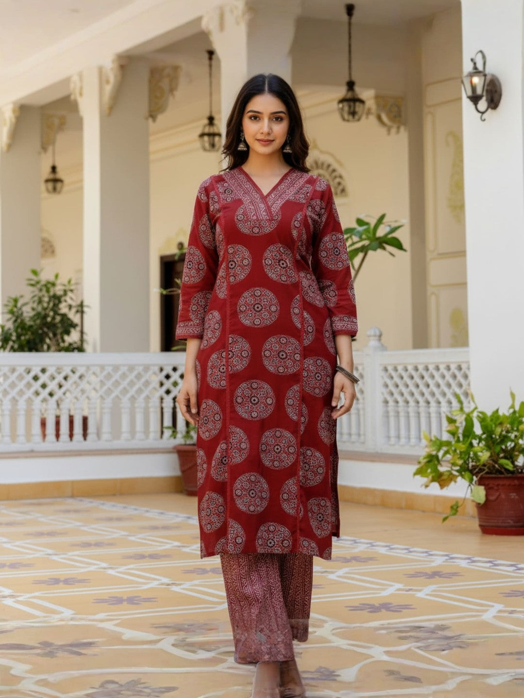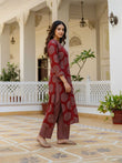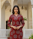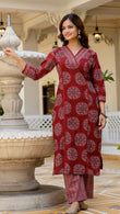 Maroon Printed Rayon Blend Straight Kurta With Pant