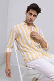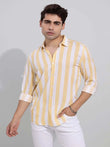 Men's Yellow & White Striped Slim Fit Shirt