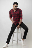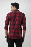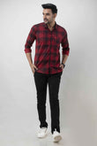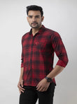 Red Checks Cotton Blend Slim Fit Men's Casual Shirt