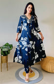 V Neck Printed Rayon Kurta with Palazzo Set