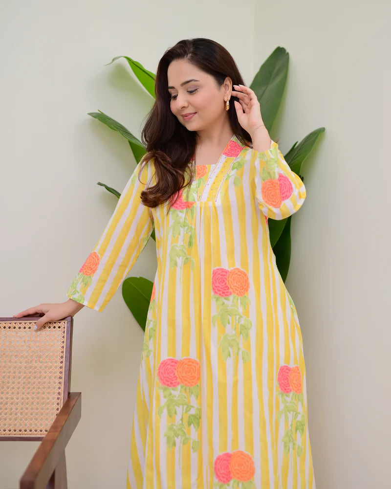 Beautiful V Neck Printed Rayon Kurta with Palazzo Set