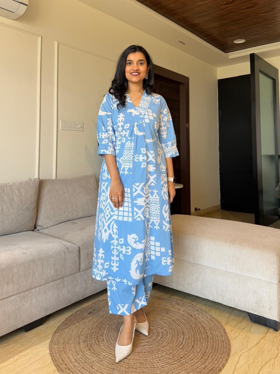 Beautiful V Neck Printed Rayon Kurta with Palazzo Set